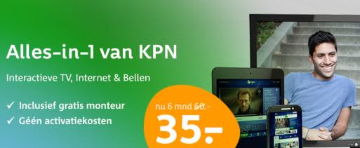 KPN heeft per 19 augustus haar actie op de Alles-in-1 en Internet en TV pakketten aangepast. Voor de pakketten betaal je nu het eerste half jaar 35 euro per maand. Voorheen ontving je de eerste drie maanden korting. Zowel nieuwe DSL- als glasvezel-abonnees kunnen profiteren van de actie.