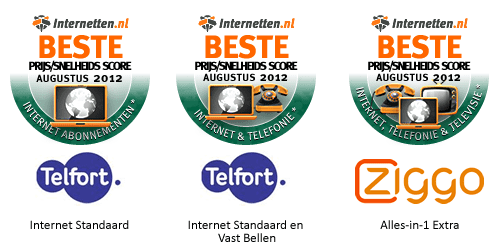 | De prijssnelheidsscore is een combinatie van de gemeten snelheid door iPing en de prijsinformatie afkomstig van Internettten.nl. Naast de metingen, die dagelijks plaatsvinden, zijn er ook voortdurend tariefswijzigingen. Om deze reden wordt de prijs/snelheidsrating maandelijks geüpdatet. Een 5 is de hoogst haalbare score voor een abonnement, d.w.z. de beste verhouding tussen prijs en snelheid. Een aantal grote providers heeft afgesproken om per 1 januari 2013 ook de realistische internetsnelheden aan de klant te melden. De afspraak is een initiatief van minister Verhagen van Economische Zaken, die het belangrijk vindt dat de consument van tevoren goed geïnformeerd wordt over de diensten van de providers. Goed voorbeeld doet goed volgen zullen we maar zeggen! ![]()