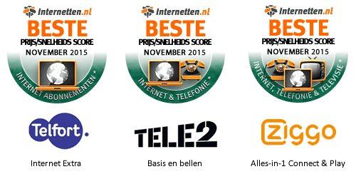 Binnen de categorie Internet + Bellen handhaven Tele2 en Telfort hun eerste en tweede positie. En Stipte blijft staan op de derde plek met het Internet en Bellen 100 Mbps pakket.