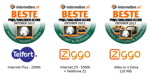 In de uitslag van de Internetten.nl iPing prijssnelheidstest oktober 2011 hebben enkele verschuivingen plaatsgevonden ten opzichte van de vorige maand.