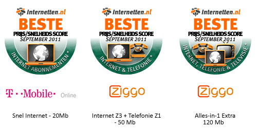 In de uitslag van de Internetten.nl iPing prijssnelheidstest september 2011 hebben enkele verschuivingen plaatsgevonden ten opzichte van de vorige maand.