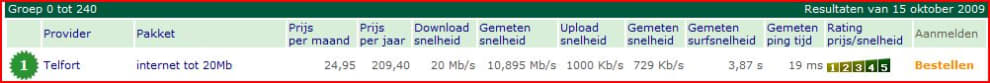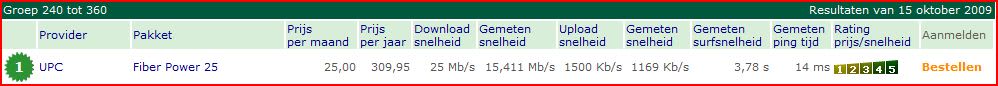 Per 15 oktober staat UPC in alle categorieën bovenaan, behalve in de goedkoopste prijsgroep. Daar scoort Telfort Internet tot 20 Mb het best.